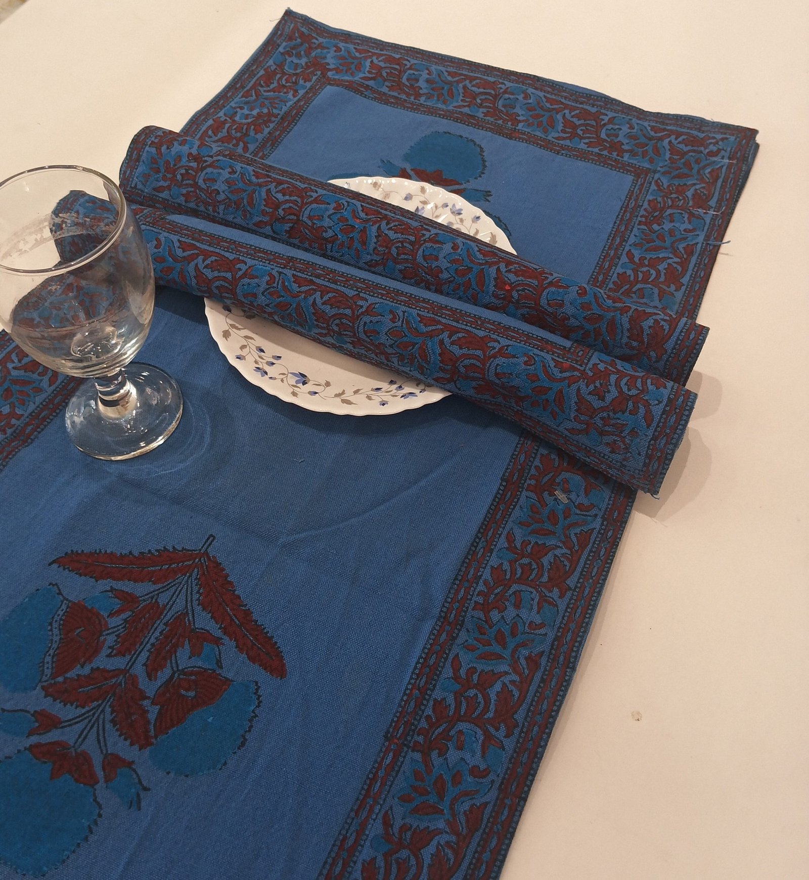 Elevate your dining experience with our Pink Floral Design Hand Block Printed Table Mats & Table Runner Set. Each piece is carefully handcrafted using traditional hand block printing techniques on premium cotton casement, blending elegance with artisanal charm. The soft pink floral motifs bring a fresh, graceful touch to any table setting—perfect for both everyday use and special gatherings.