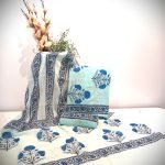 This is an exquisite Cotton Hand Block Printed Unstitched Kurti & Bottom with Mulmul Dupatta. These are beautifully crafted by the skilled women artisans at Alankaran Designs –