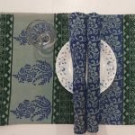 Blue Flower Design With Green Border Hand Block Printed Table Mat Runners