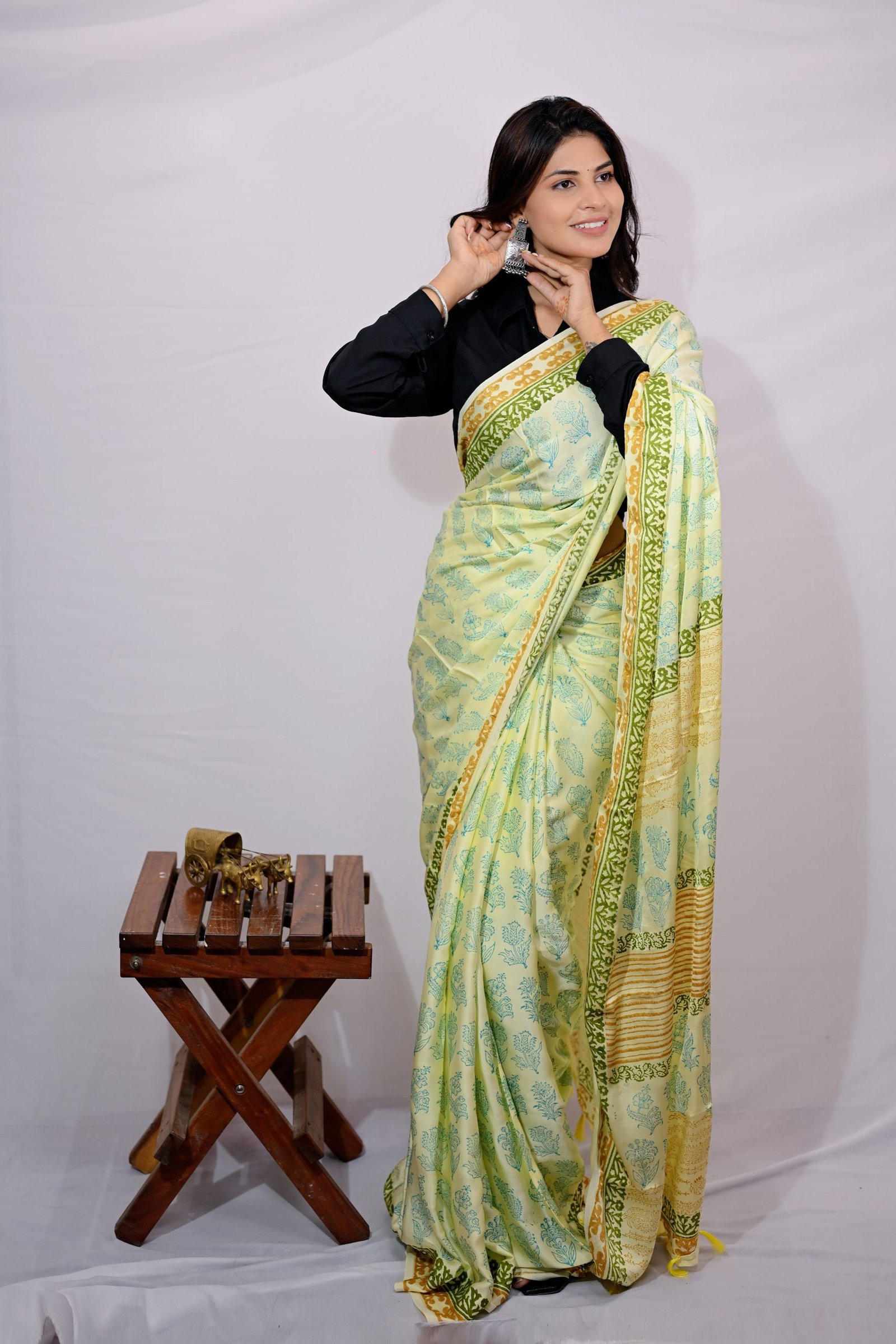 If you’re looking for a hand block printed modal silk saree, this Feeroza Modal Silk Saree combines luxury fabric with artisanal craft. This traditional yet contemporary design saree reflects creativity, tradition and modern elegance. The saree is perfect for office wear, gatherings, evening party, cocktail party, get togethers and formal occasions.