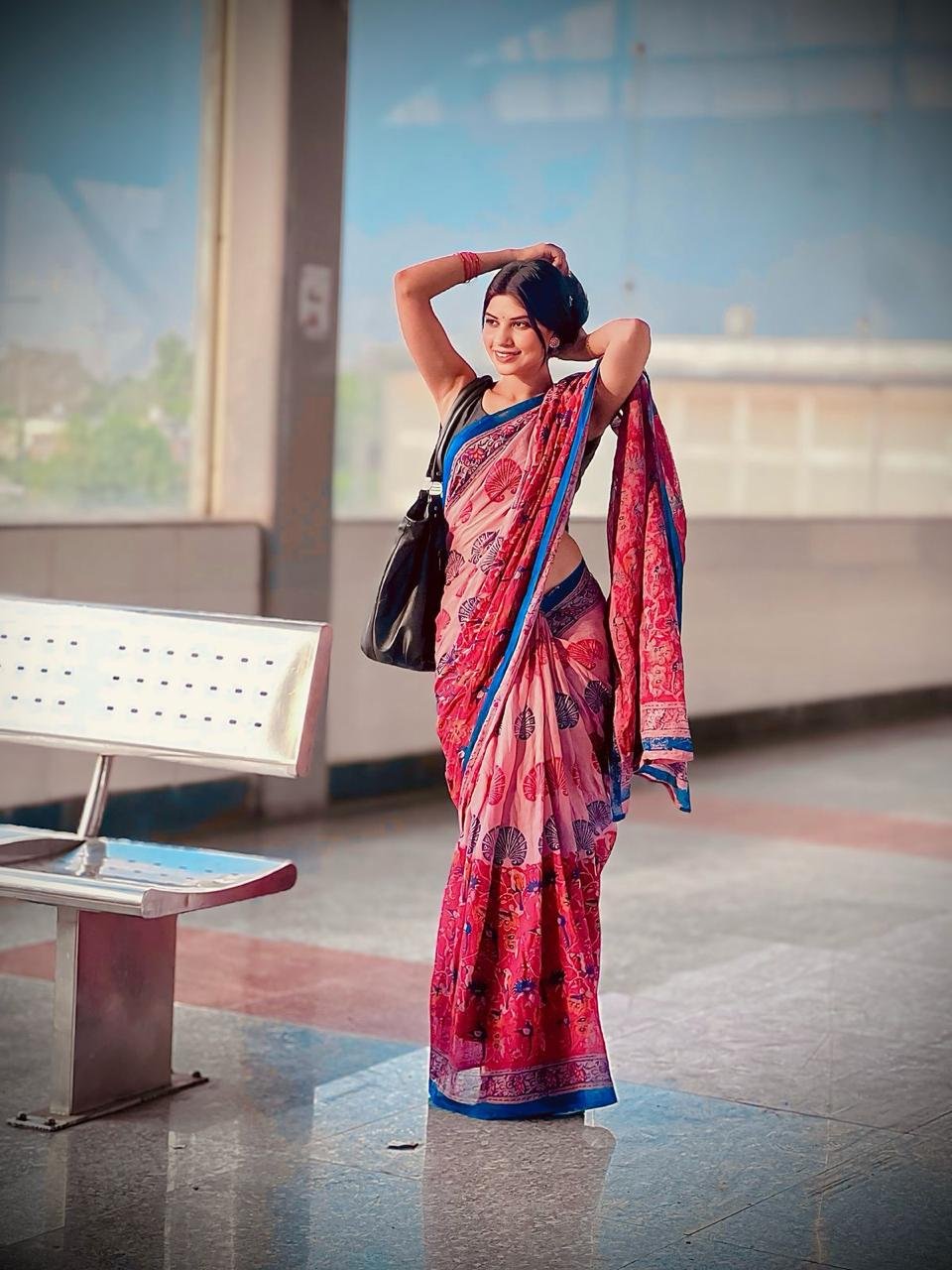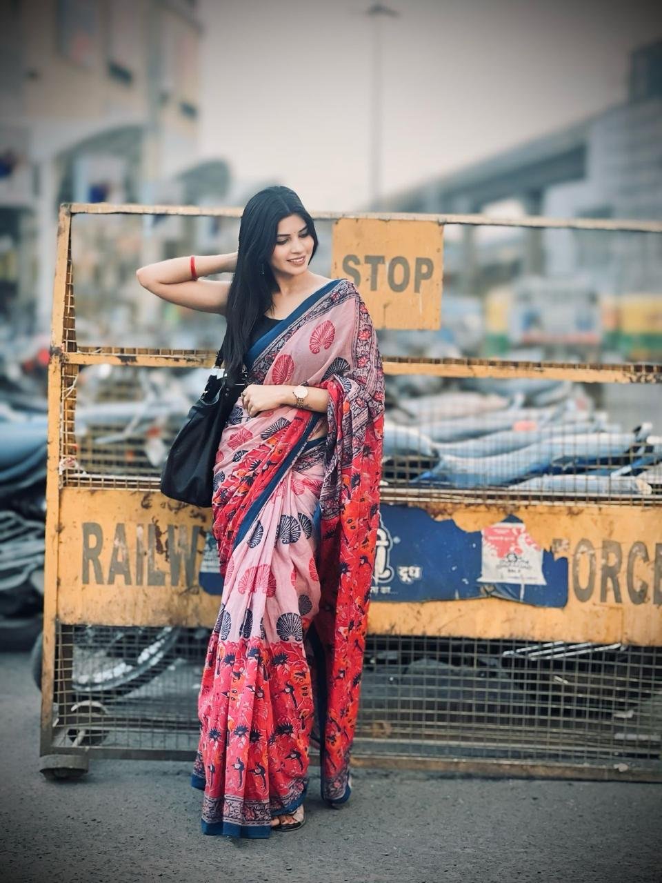 This is an exquisite Hand Block Printed Saree beautifully crafted by the skilled women artisans at Alankaran Designs.  Each design narrates a tale of meticulous craftsmanship by the talented women artisans of Alankaran Designs. Cotton Mulmul fabric will adorn you like breeze of cool air. It is very light weighted and easy to wear.