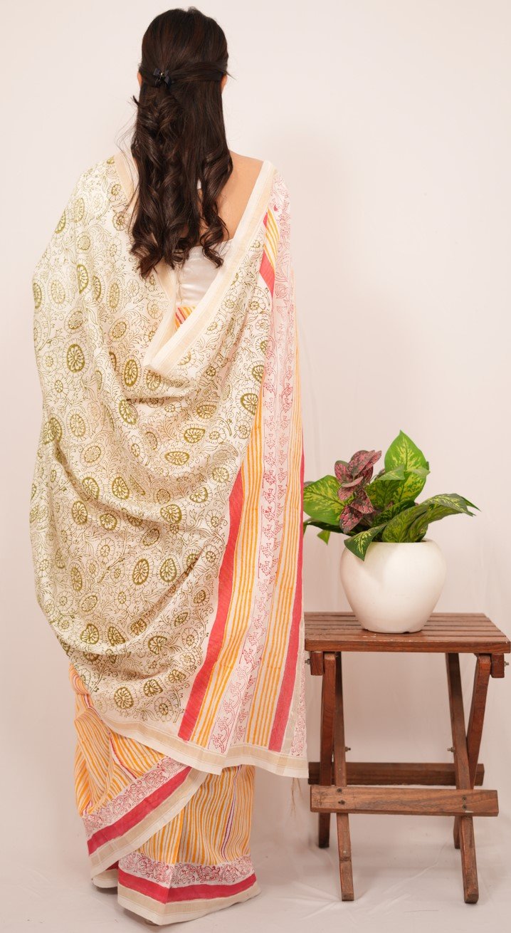 Handblock Printed Maheshwari Saree
