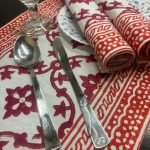Red Floral Handblock Printed Table Mats & Table Runner