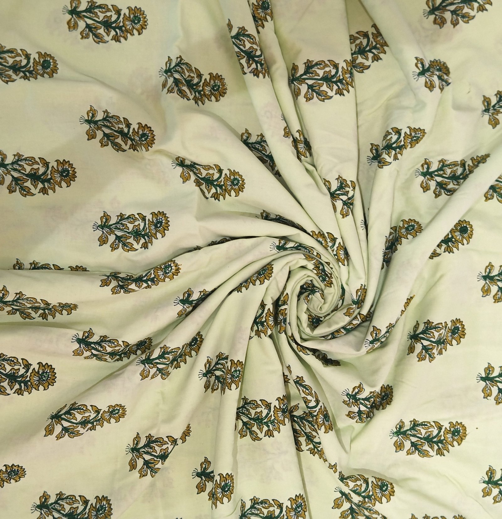 Lizard Green Boota Hand Block Printed Cotton Fabric