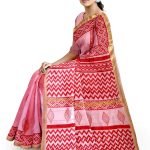 Pink Ikat Design Handblock Printed Chanderi Saree
