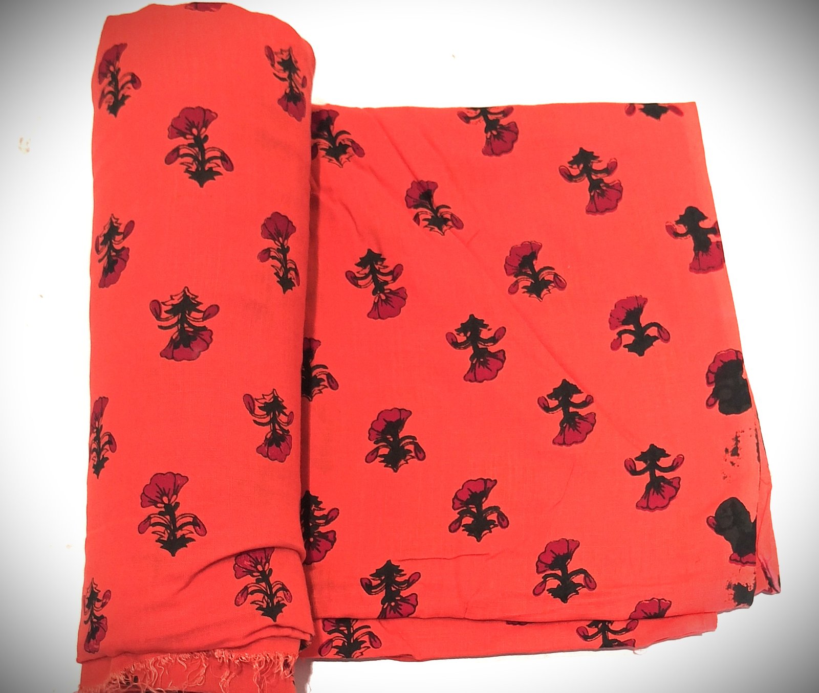Red Floral Boota Hand Block Printed Fabric