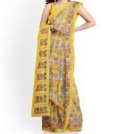 In design and craftsmanship, each saree is a labor of love, with artisans hand-carving intricate wooden blocks representing unique design elements. These blocks are dipped in rich, vibrant dyes and skillfully pressed onto the finest quality fabric, creating captivating patterns narrating stories of culture and tradition.