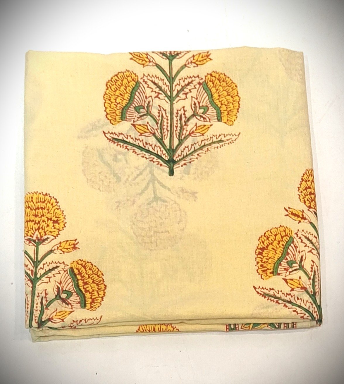 Yellow Flower Hand Block Printed Un stiched Suit Materials
