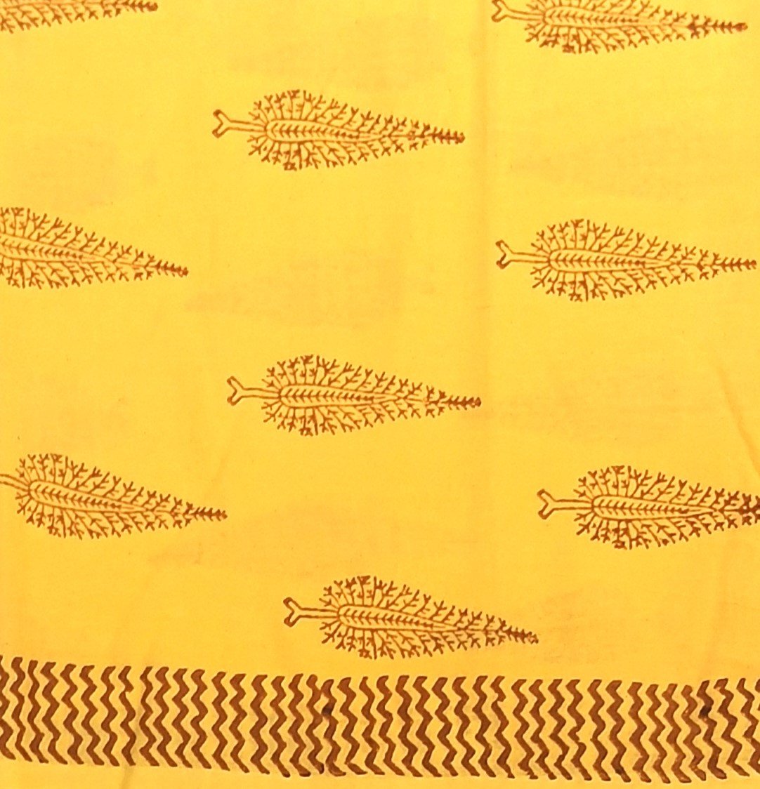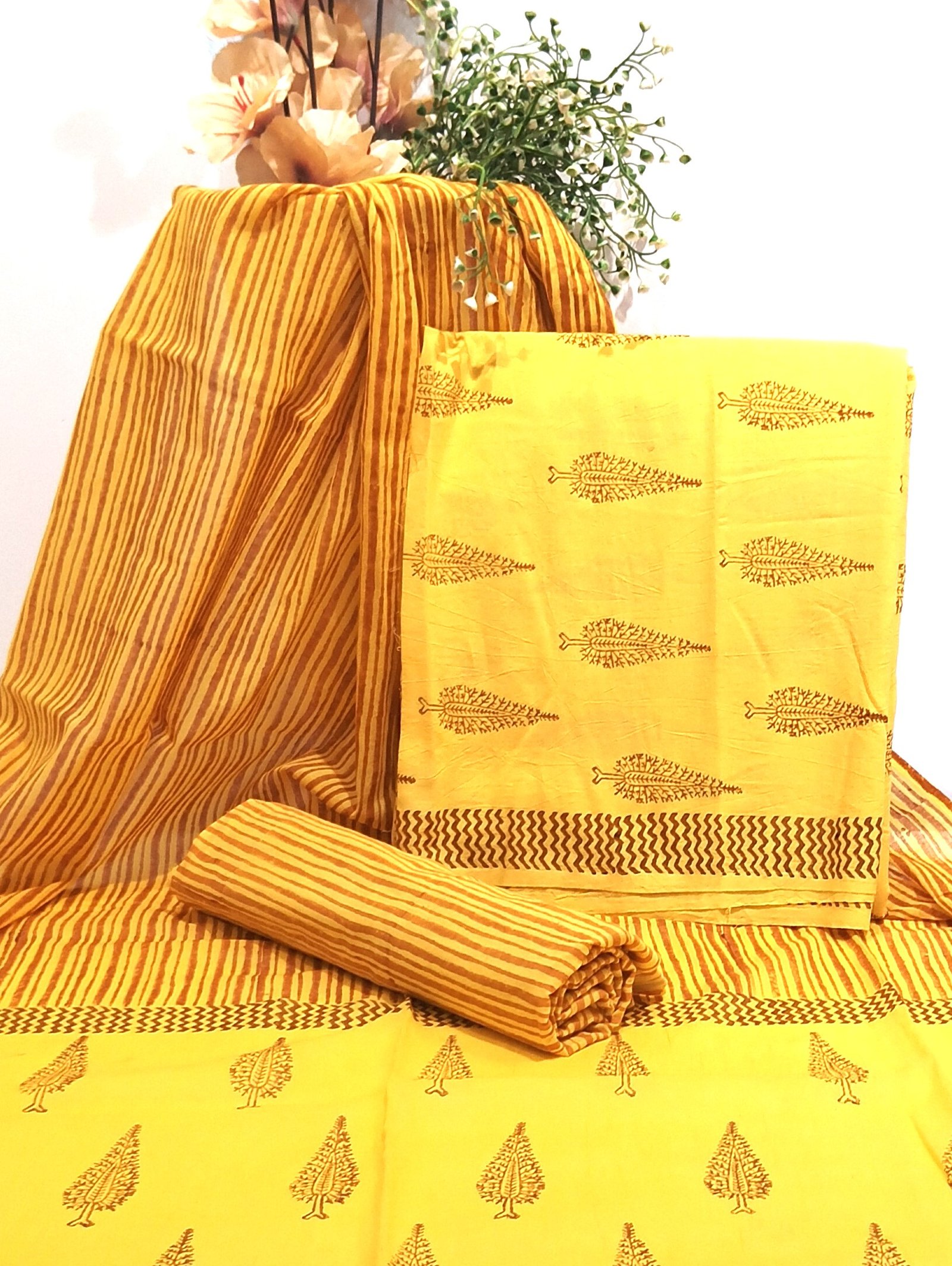 Yellow Tree Boota Hand Block Printed Salwar Suit Fabric